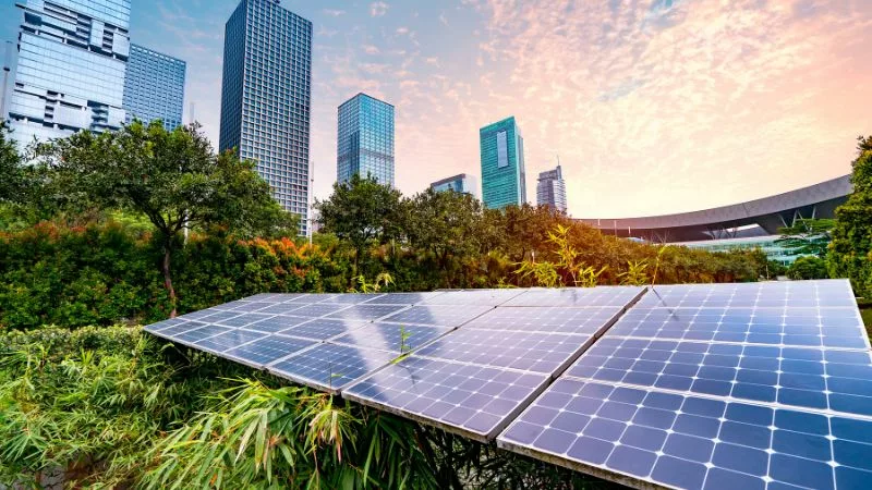 Solar panels are made up of multiple photovoltaic cells, typically using crystalline silicon and elements like phosphorus and boron. When sunlight hits the PV cells, it excites electrons, creating an electric field that produces direct current (DC) electricity.