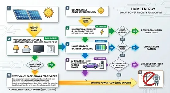 This technology directs excess solar electricity—power generated by your panels that exceeds your home’s immediate consumption—directly into the EV battery instead of exporting it to the local power grid. The energy flow is governed by a strict priority chain: